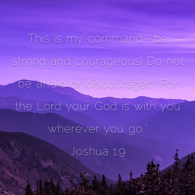 God gave this command to Joshua as he was about to lead the Israelites across the Jordan River and into the land He had promised them. Earlier in the same chapter God told Joshua to be strong and courageous two other times. The Israelites were outnumbered and afraid that the gods of the Canaanites would grant the Canaanites victory in battle. Oh, how we humans have such little faith and courage to trust in our God! But that brings me to my next question. What are the Canaanites in your life? What are the things you are afraid of and feel like you will never overcome? It could be overcoming past hurts in your life, financial struggles, or a relationship that is struggling. These are just a few examples of thousands of possibilities out there.